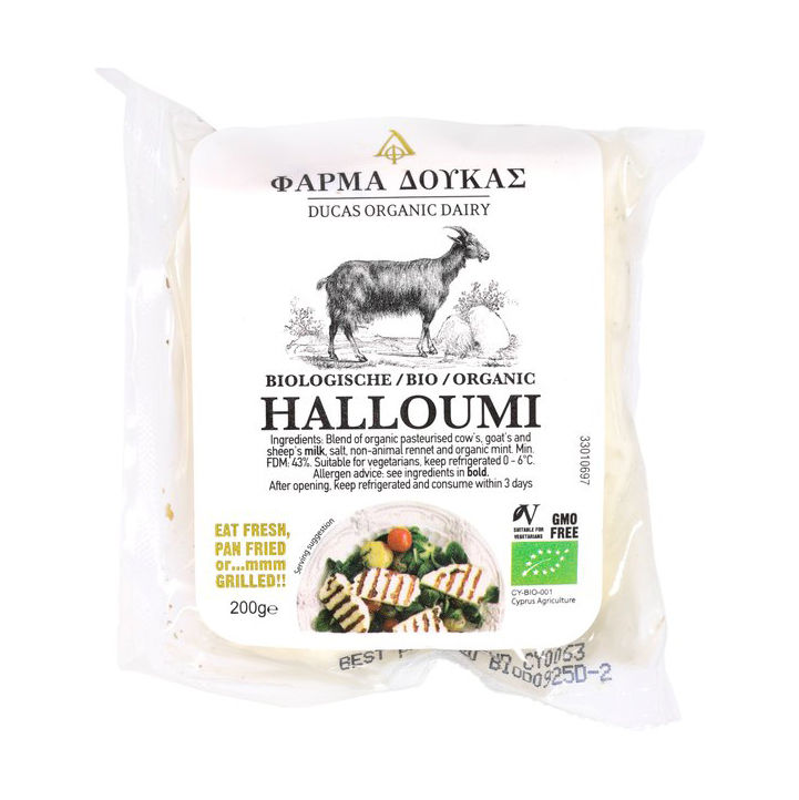 Cypriot Halloumi, blend of cow's, goat, sheep milk & mint 200g (Organic, Ducas)